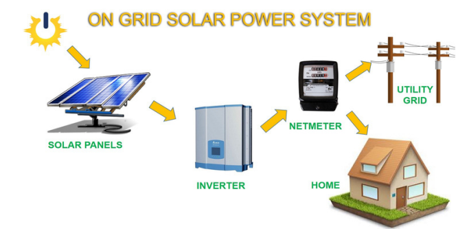 On-grid means your solar system is tied to your local utility's GRID. This is what most residential homes will use because you are covered if your solar system under or overproduces in regard to your varying energy needs. You don’t have to worry about storing energy; the grid will usually be there to make sure all the loads can run when the user wants them. On-Grid applications: Solar Home System